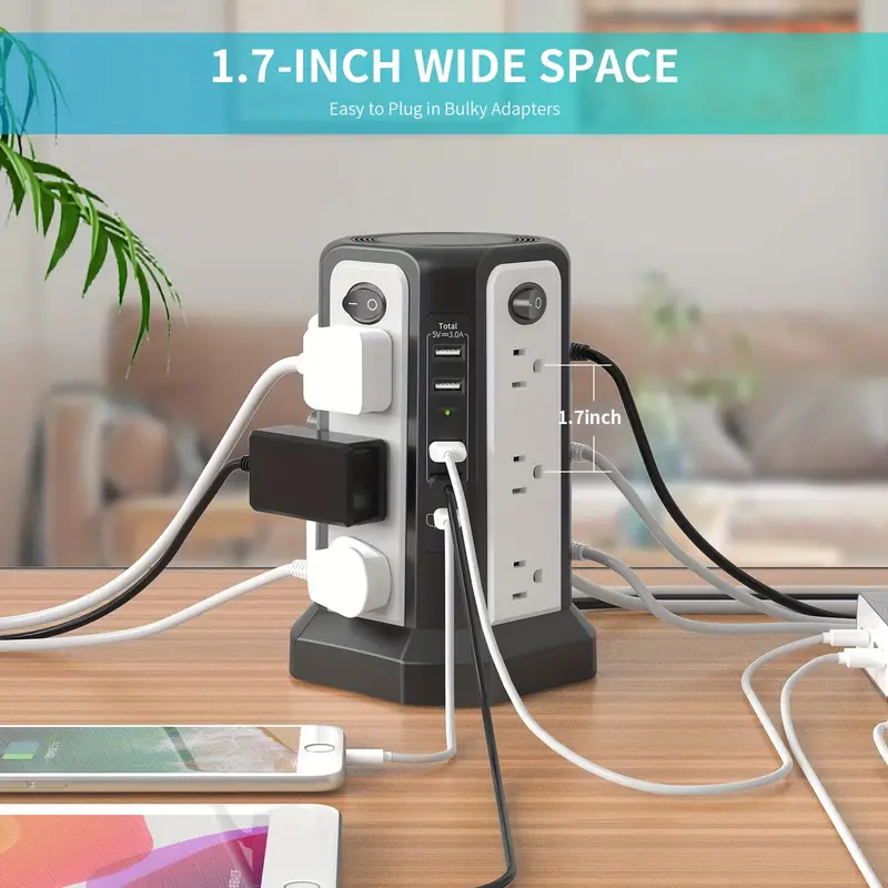 Surge Protector Power Strip With PD18W USB C: This USB-C Port With A Maximum Output Of 18W. The USB C Port Of The Surge Protector Power Strip Charges Up To 30% Faster, Which Will Save You More Time. Because This Passus Surge Protector Power Strip Tower Has Opted For A More Life-adapted Fast-charging Port. This Is An Excellent Charging Tower.